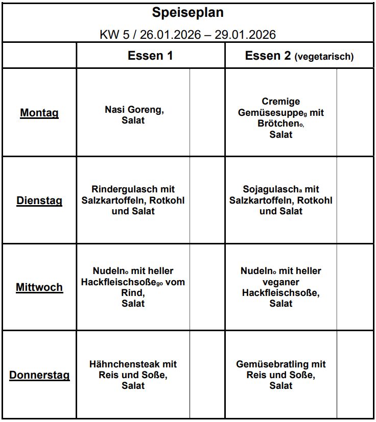 Speisepläne unserer Mensa